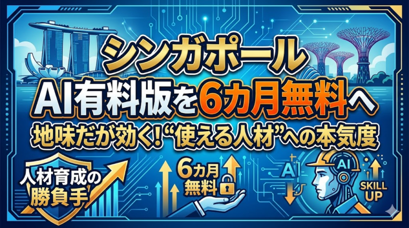 シンガポールは2026年後半から、指定AI講座の受講者に有料AIツールを6カ月無料で提供する。研修費ではなく実際のツール利用まで政策対象に広げた点が、AI時代の雇用政策として興味深い。 -