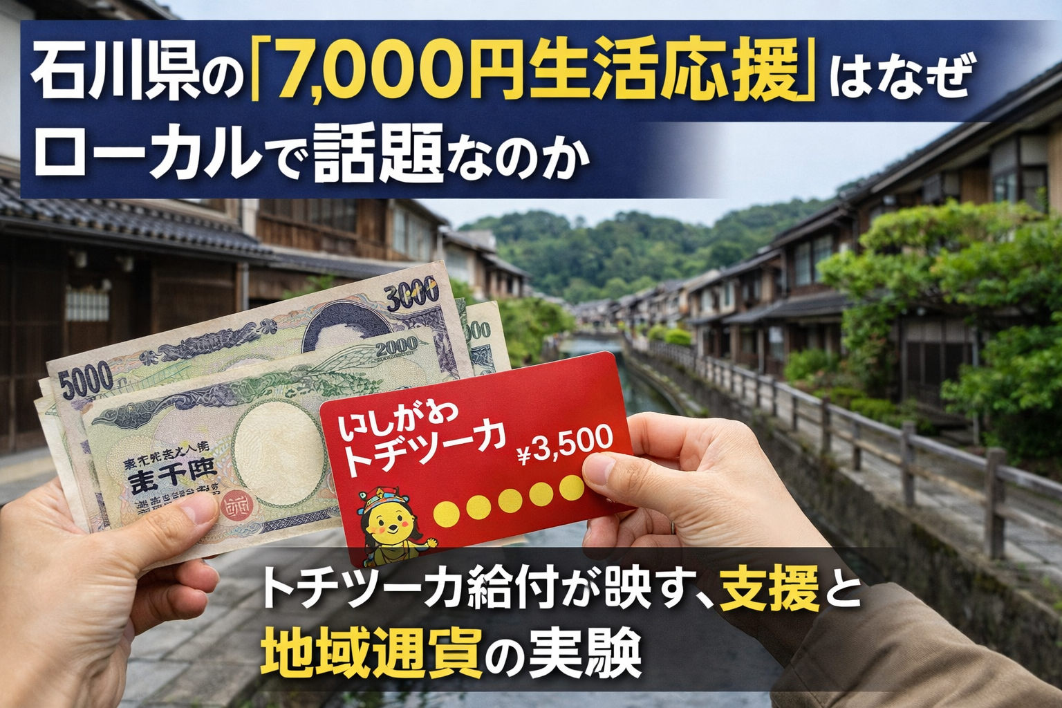 石川県の「トチツーカで受け取る いしかわ生活応援」は、地味に見えて、生活支援を地域通貨に乗せる実験が本格運用に入ったことを示すニュースだ。県民にとっては7,000円相当の実利があり、自治体にとっては地元消費を促す手段にもなる。