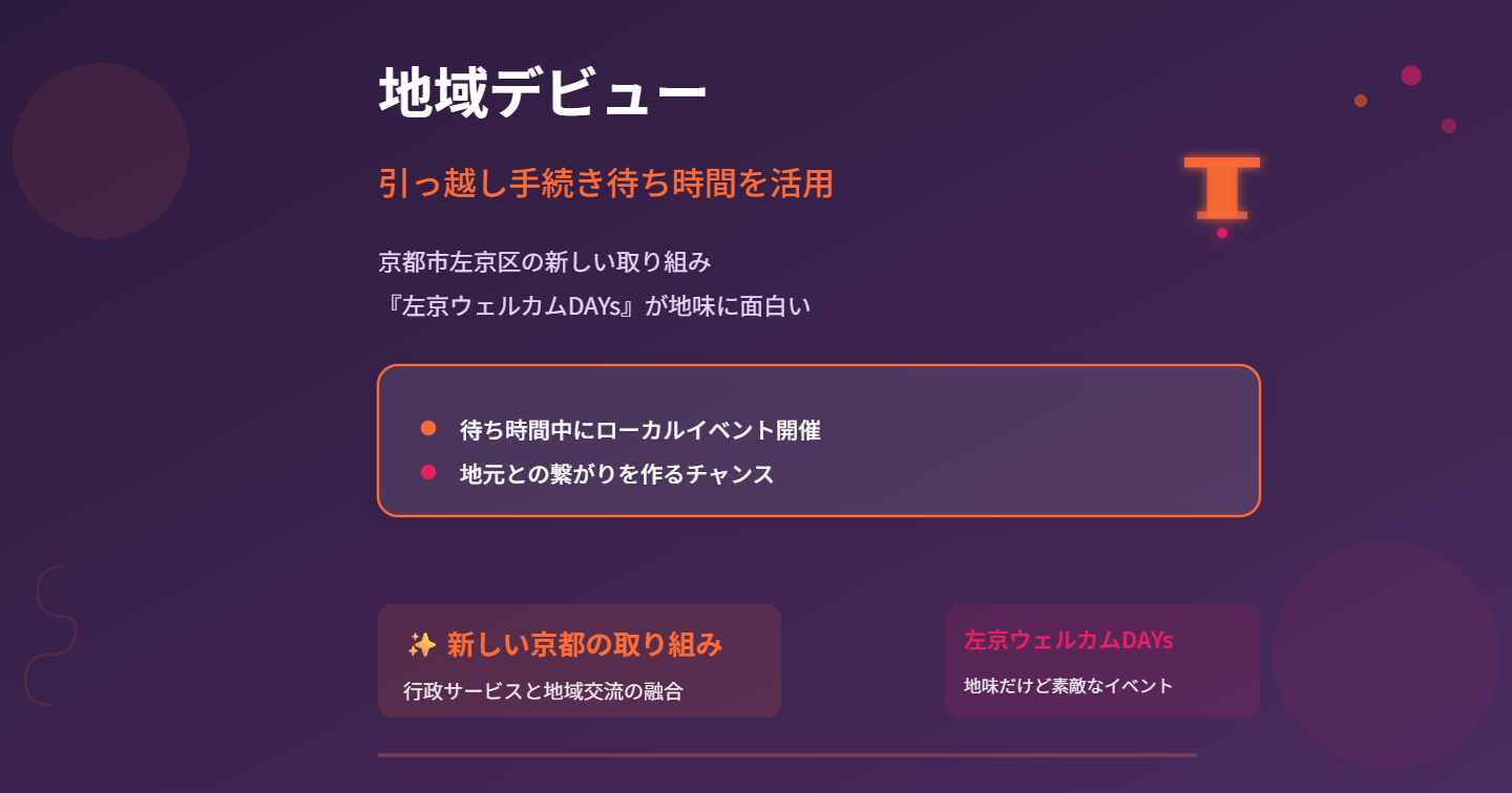引っ越し手続きの待ち時間を「地域デビュー」に変える 京都市左京区の『左京ウェルカムDAYs』が地味に面白い
