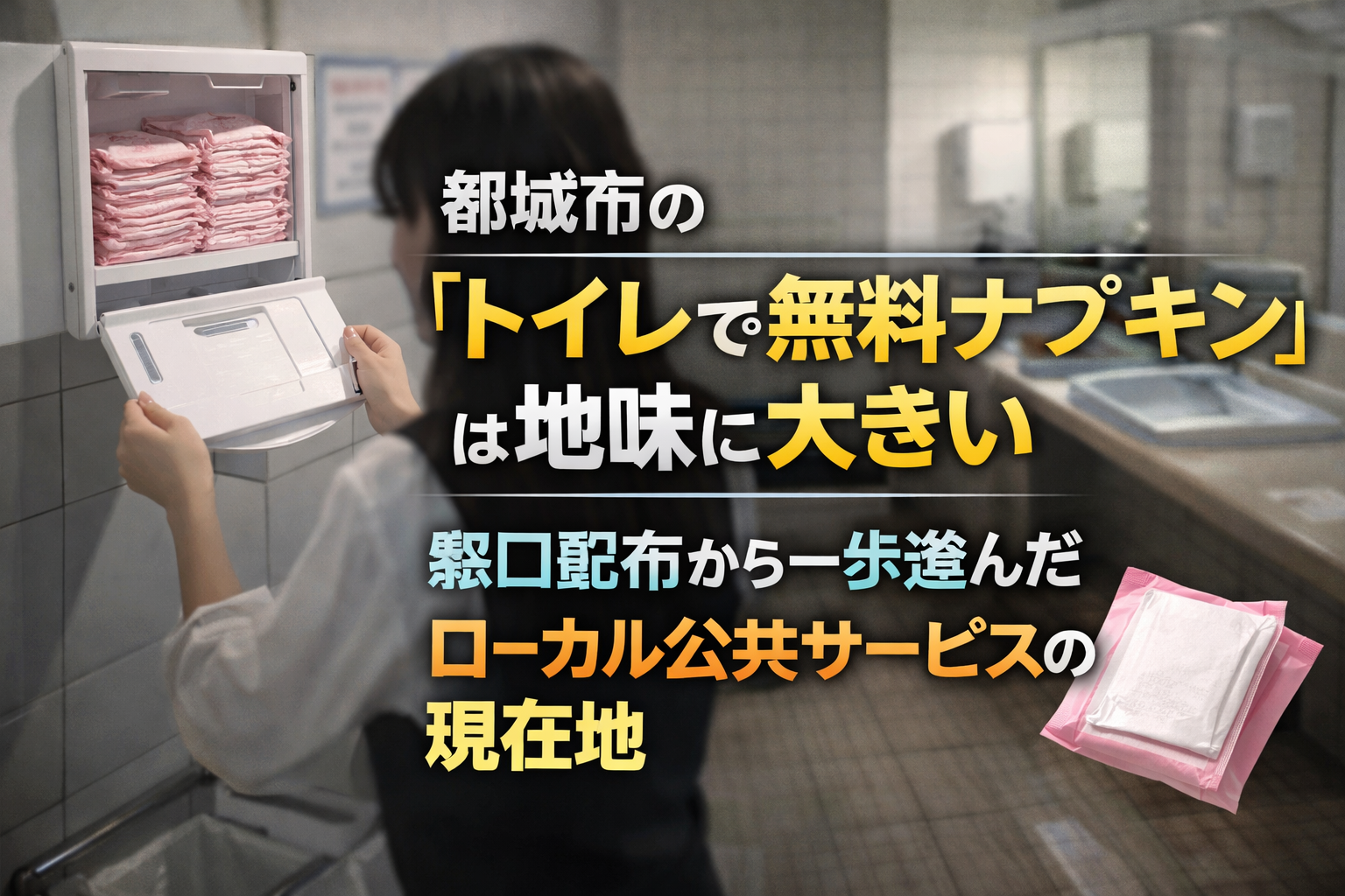宮崎県都城市で2026年2月6日に始まった、生理用品を女性用トイレ個室で無料提供する仕組みは、全国ニュースの主役ではないが、生活にかなり近いローカルニュースだ。ポイントは「無料配布」そのものより、窓口で頼む支援から、必要な瞬間に自分で取れる公共サービスへ一段進んだことにある。生理用品をトイレットペーパーに近い公共インフラとして扱う発想が、地方都市から具体化し始めたとも言える。