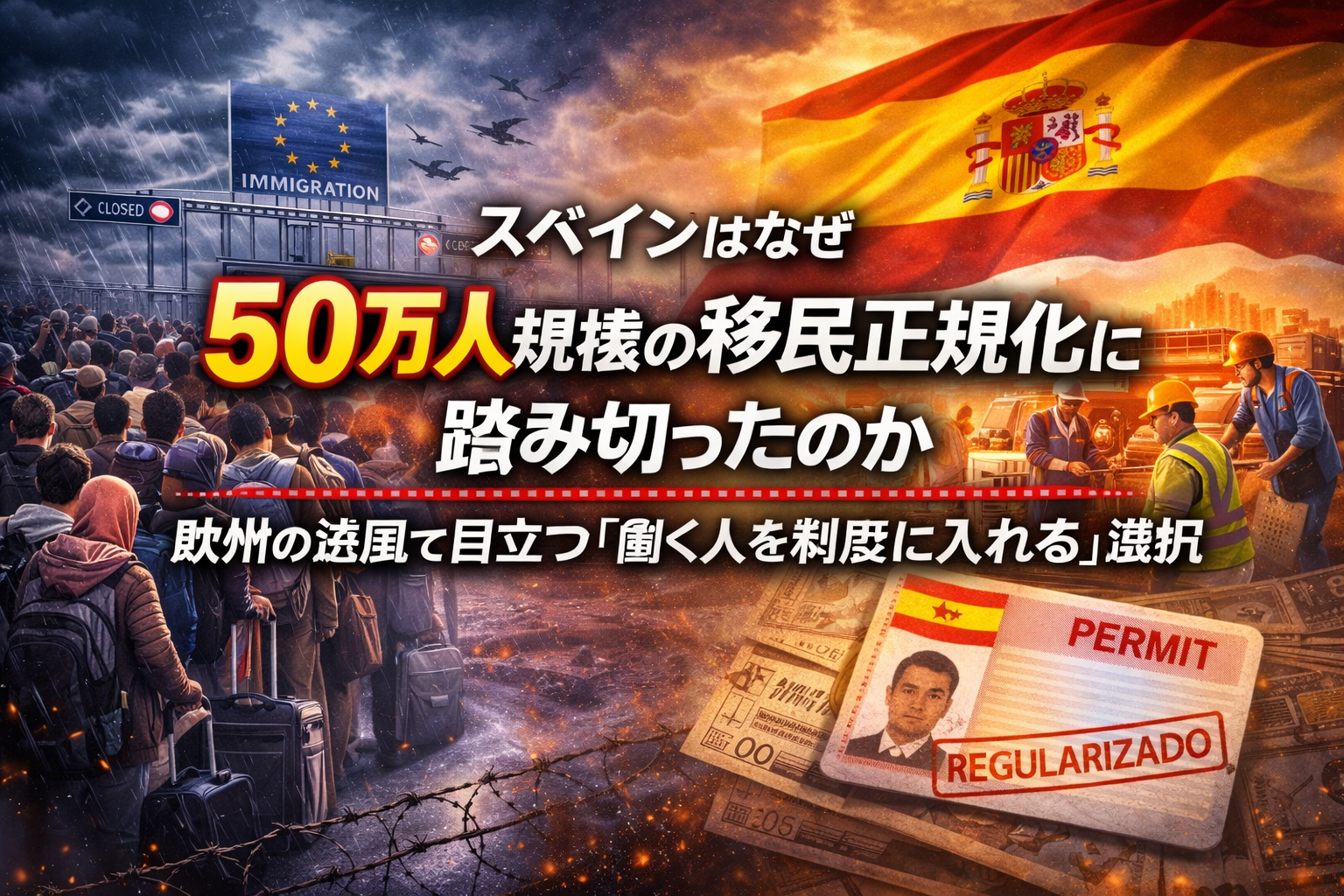 核心は、国境管理の緩和ではなく、すでにスペインで暮らし、働いている人を税、社会保障、医療の制度内に入れる政策だという点です。欧州各国が移民規制を強めるなか、スペインは人手不足と高齢化を前に、別の答えを選びました。