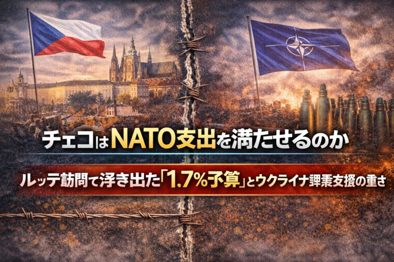 NATOのルッテ事務総長がプラハを訪れ、チェコの防衛支出とウクライナ弾薬支援が改めて焦点になった。国防省予算がGDP比1.7%台にとどまるなか、チェコは同盟内の信用と国内財政の両方をどう保つかを問われている。 -