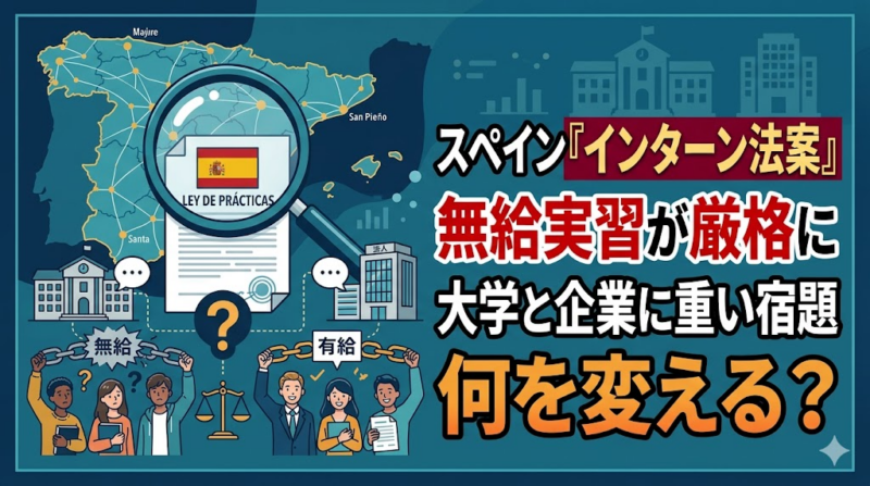 スペイン政府は2026年3月3日、無給実習を含む学生インターンの新ルールを議会に送った。狙いは若者保護だが、大学と企業には受け入れ体制の再設計を迫る内容になっている。