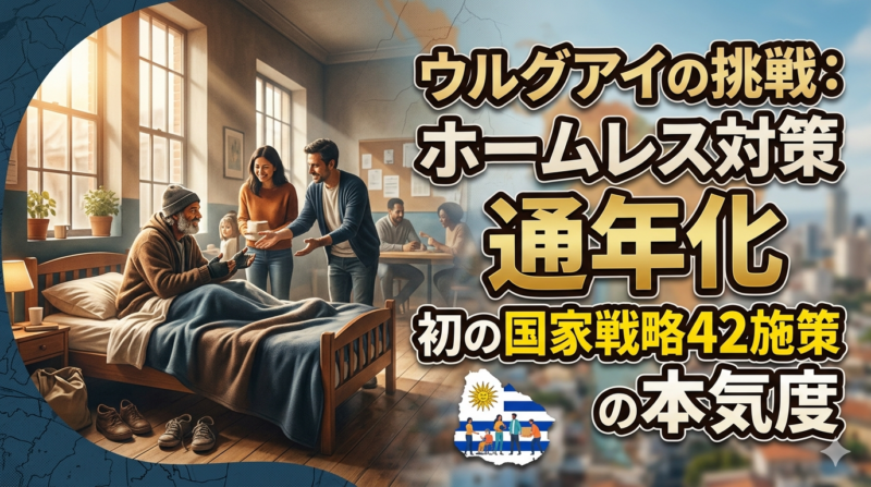 ウルグアイ政府は2026年4月、路上生活者対策を冬季限定の避難所中心から通年型へ切り替える初の国家戦略を公表した。42施策の焦点は、住まい・医療・就労を束ねて路上に戻りにくい仕組みをつくることにある。