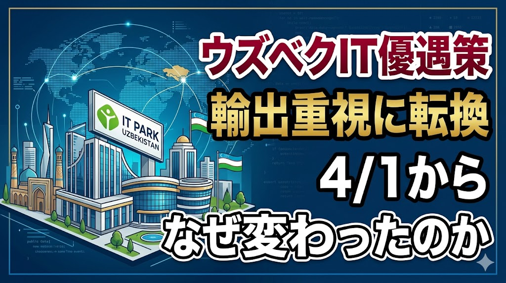 ウズベキスタンで2026年4月1日、政府系テック拠点「IT Park Uzbekistan」の優遇ルールが大きく変わった。国内向けの決済・マイクロファイナンス事業は税・関税優遇の対象から外れ、その一方で、海外展開を狙うスタートアップには新しい支援が広がる。