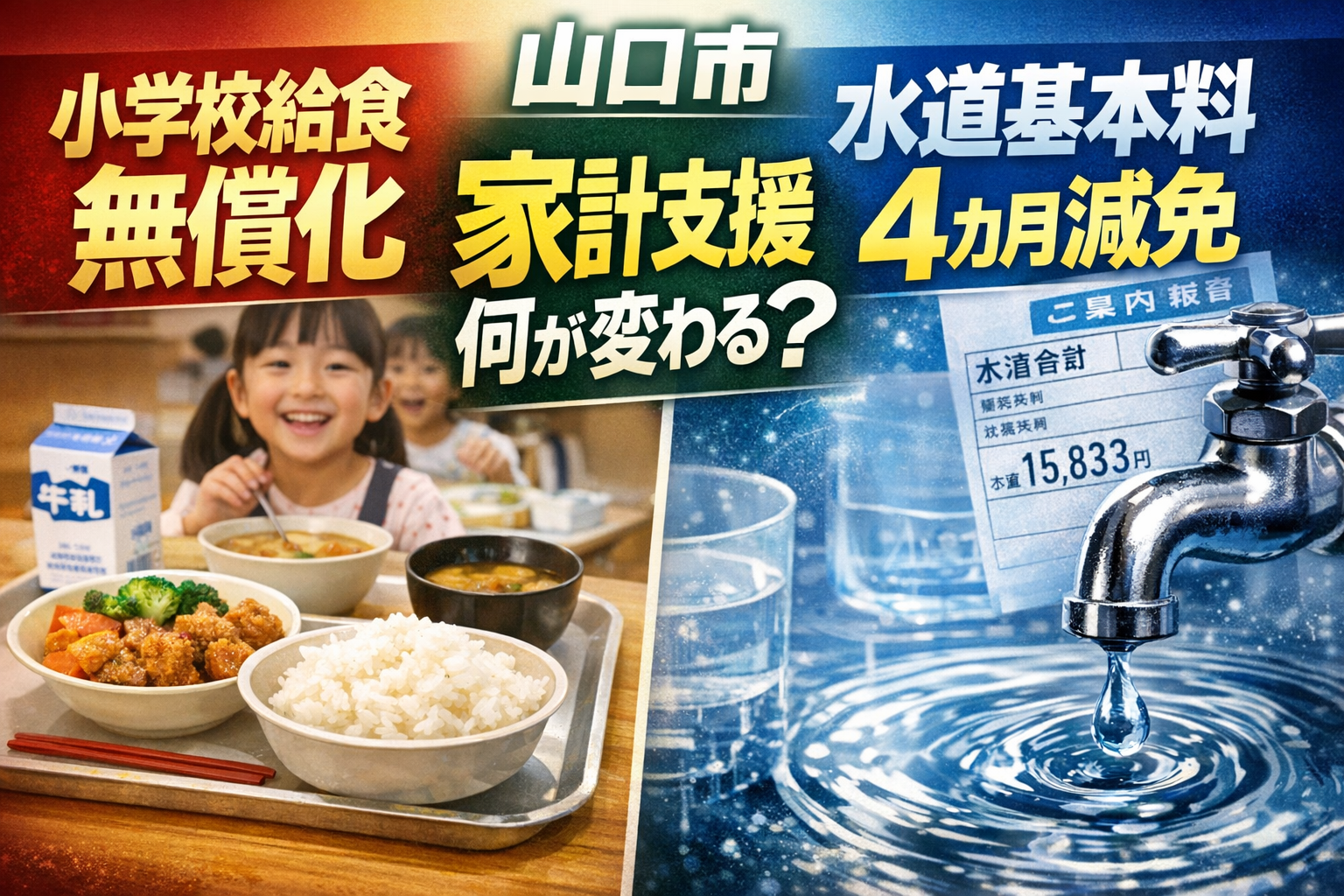 山口市の家計支援は何が変わるのか 小学校給食の無償化と水道基本料金4か月減免の実際